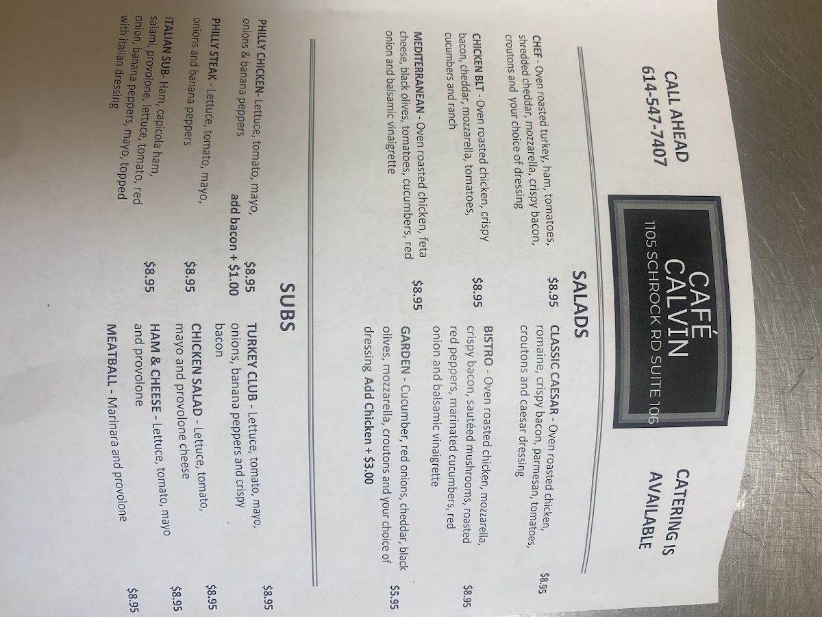 Located at 1105 Schrock Rd in Columbus, OH, Cafe Calvin is a delightful hidden gem that welcomes patrons with open arms and a vibrant atmosphere. This charming cafe prides itself on offering a superb blend of flavors, making it a perfect place for breakfast or a satisfying lunch break. The moment you step inside, you're greeted with the warm aroma of freshly prepared meals, friendly staff ready to serve, and a cozy environment that encourages you to stay a little longer.