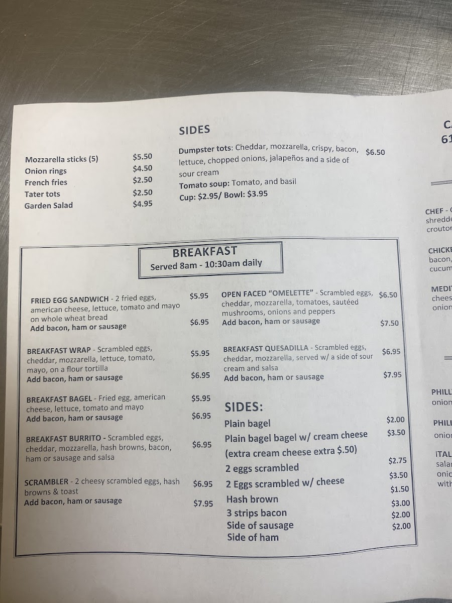 Breakfast fans will definitely want to indulge in their Breakfast Bagel, featuring a perfectly fried egg, American cheese, and your choice of crispy bacon, ham, or sausage. For those seeking a heartier start, the Open Faced "Omelette" is an absolute delight, featuring a medley of sautéed mushrooms, peppers, and delectable cheeses — all baked to perfection for just $11.15.